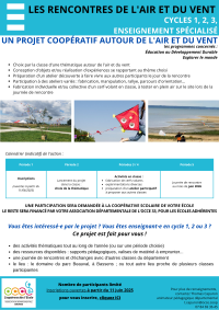 À noter... Chaque classe s’engage à fabriquer de manière individuelle et / ou collective un cerf-volant que les élèves auront le plaisir de tester en plein air sur le site de la journée de rencontre.