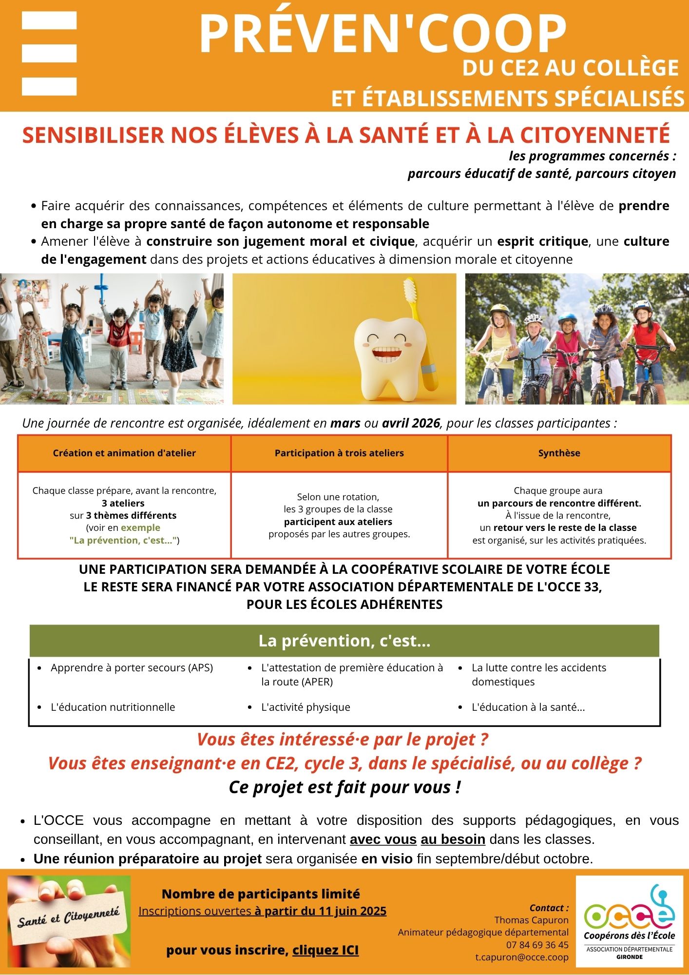 Chaque classe devra élaborer et animer 3 ateliers sur 3 temps et 3 thèmes différents (voir encart « La prévention c’est »).
